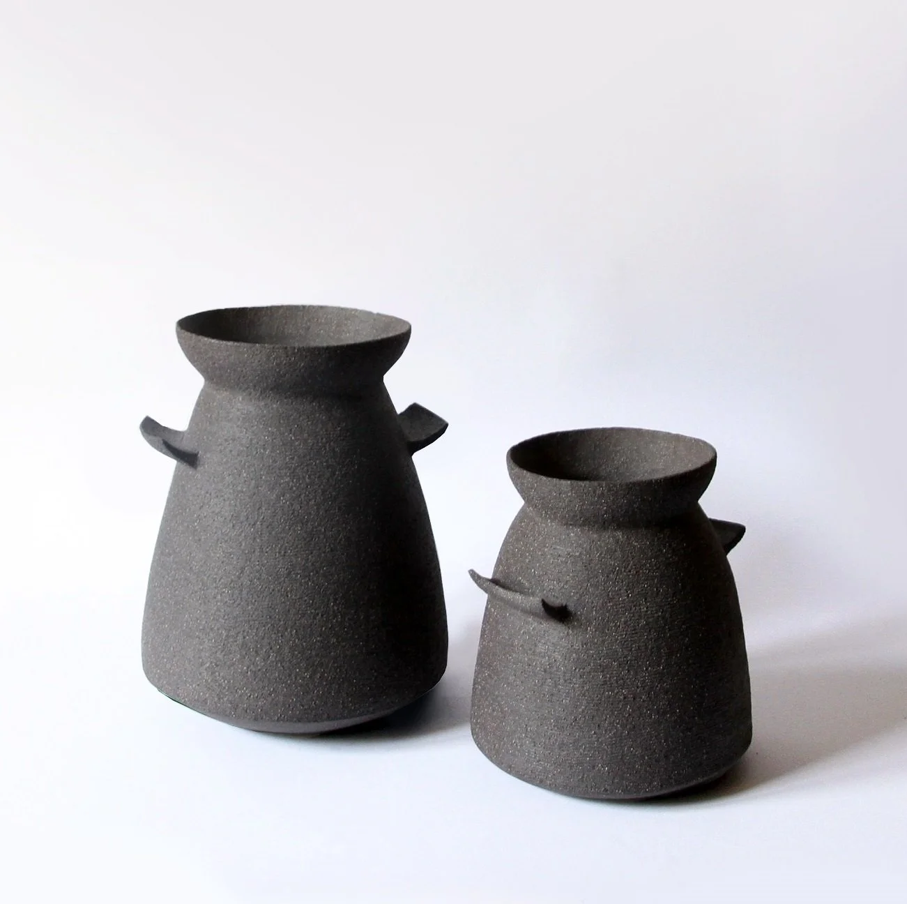 La forma, il colore, la superficie grezza e materica contribuiscono ciascuno a rendere questi vasi molto moderni, capaci di inserirsi in armonia in ogni tipo di spazio.