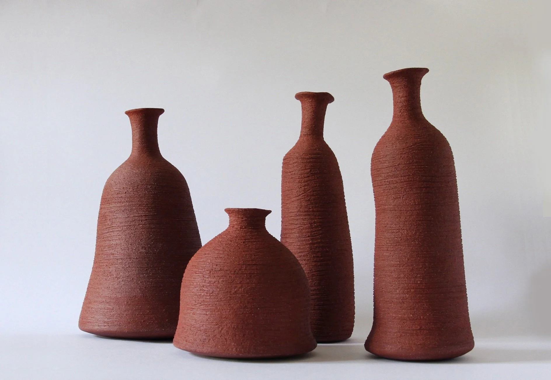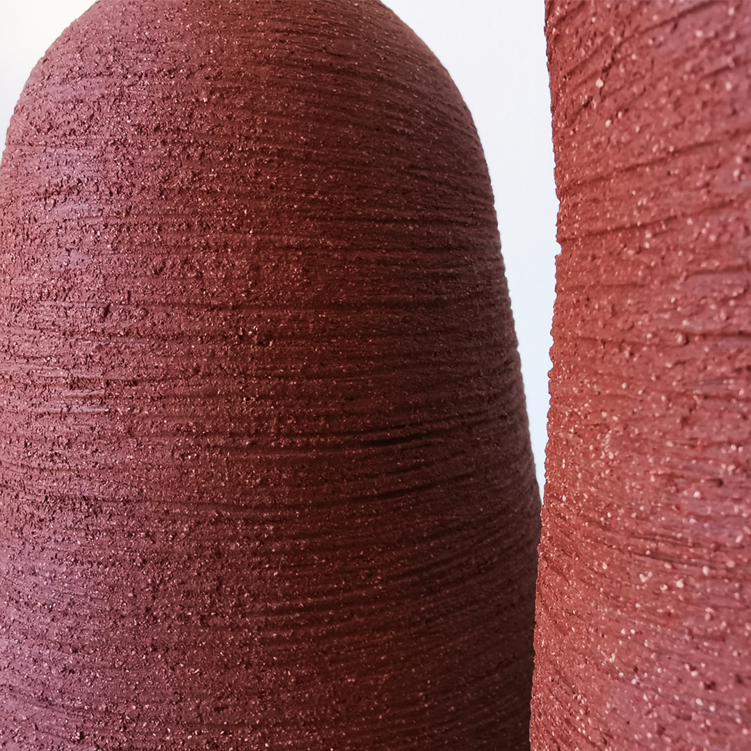 La collezione Terra è nata in modo molto istintivo. Sono partita dall’idea di una forma e ho lasciato alle mani la libertà di plasmare e trasformare l’argilla senza vincoli, semplicemente osservando e sperimentando, godendomi il percorso senza preoccuparmi troppo del risultato finale. Il colore e la superficie ruvida conferiscono alla collezione una forte connotazione materica.